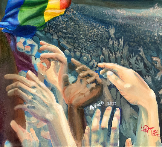 Made in collaboration with artist, Laurel Temple, to protest the suffering caused by anti-trans and anti-abortion legislation, and to encourage women, trans people, and people with uteruses to help each other and uplift each other, because we are stronger together.